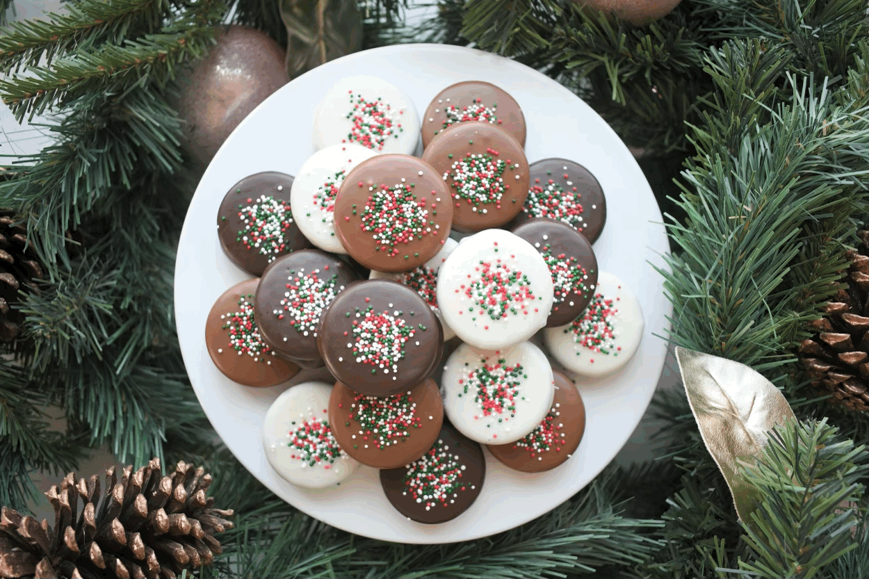 Shop › Holiday Chocolate Covered Oreos Holiday Chocolate Covered Oreos $6.00 Your favorite sandwich cookie covered in milk, dark, or white chocolate topped with festive nonpareils.3 oreos to a package Your favorite sandwich cookie covered in milk, dark, or white chocolate topped with festive nonpareils.3 oreos to a package Toppings: Select Toppings nonpareils Choose Your Chocolate: Select Choose Your Chocolate Milk Chocolate White Chocolate Dark Chocolate Assorted Chocolate (Milk/White/Dark) Quantity: Add To Cart Added!